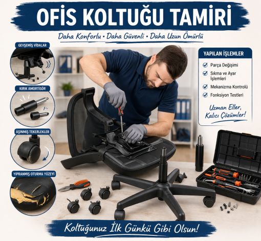 TAMİRİ- BÜRO KOLTUK BAKIM ONARIM YEDEK PARÇA İZMİR- TEKNİK SERVİS- KOLTUKLARINIZI İŞYERİNİZDE TAMİR EDİYORUZ- KOLTUK SANDALYE DERİ & KUMAŞ YÜZ DEĞİŞİMİ- MOBİLYA MONTAJ KURULUM VE NAKLİYE İŞLERİ- BÜRO MOBİLYALARI- BÜRO AKSESUARLARI- OFİS DİZAYN (ÜCRETSİZ PROJE DESTEK HİZMETİ)